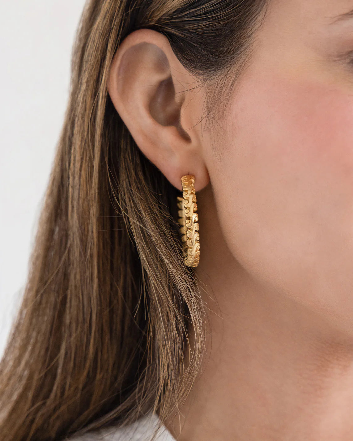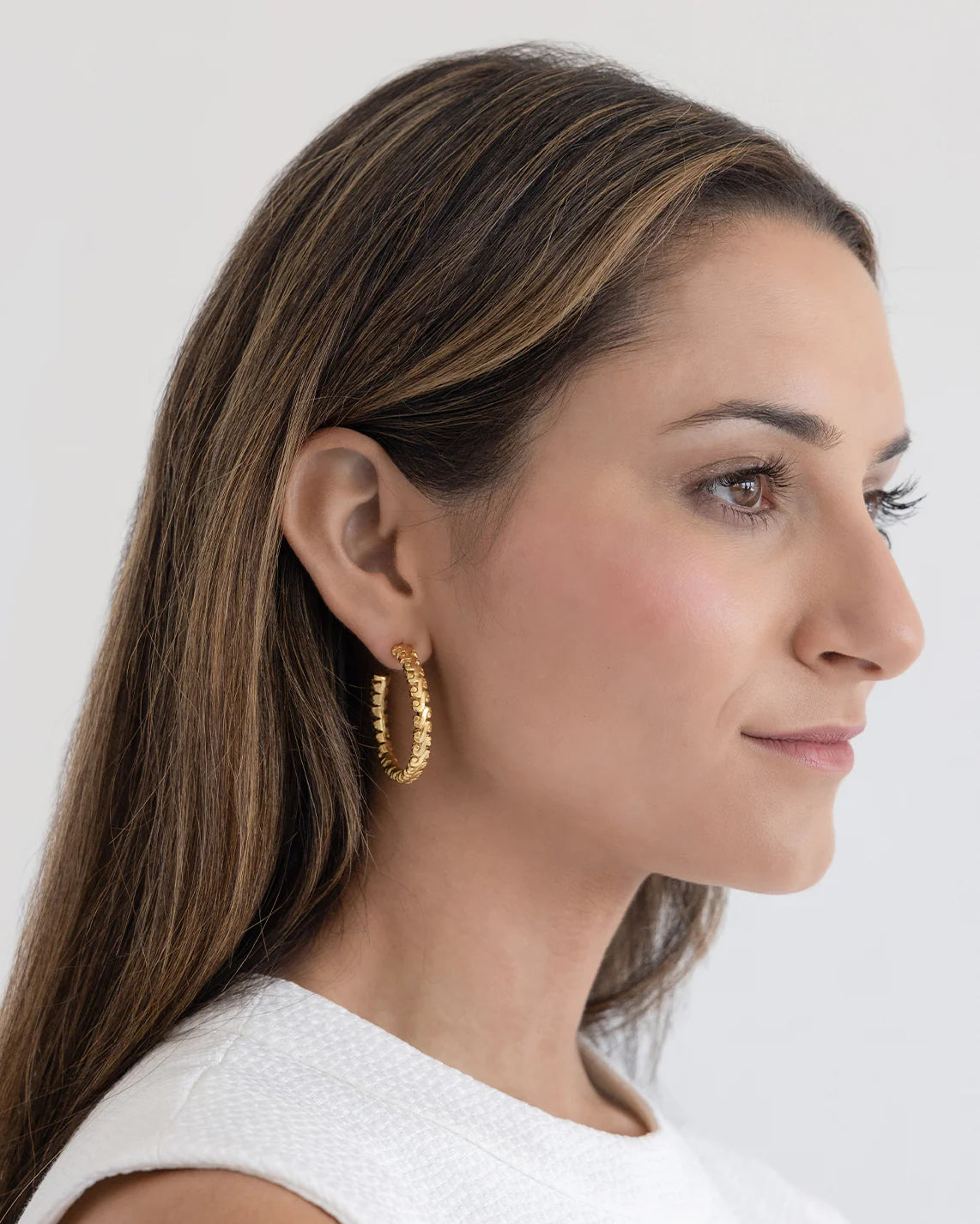 We picture our Holidaymaker Hoops peeking out below the wide brim of a woven hat. These earrings were meant to accessorize summers spent sipping fresh wine along the Italian coastline. These hoops are elegant, must-have accessories made to be worn and adored!